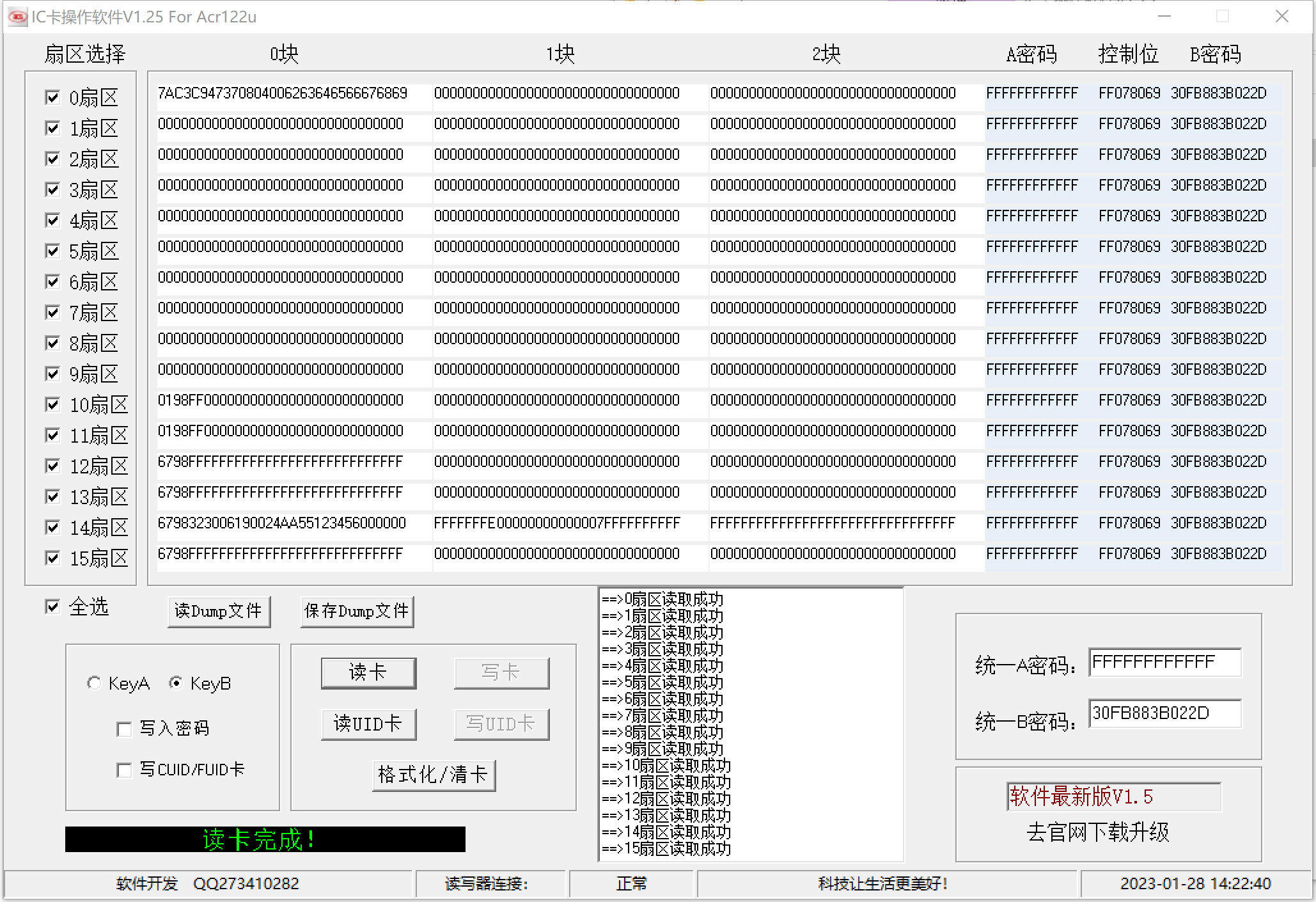 我们看到0扇区的 0块的ID已经改变 5、写入卡信息