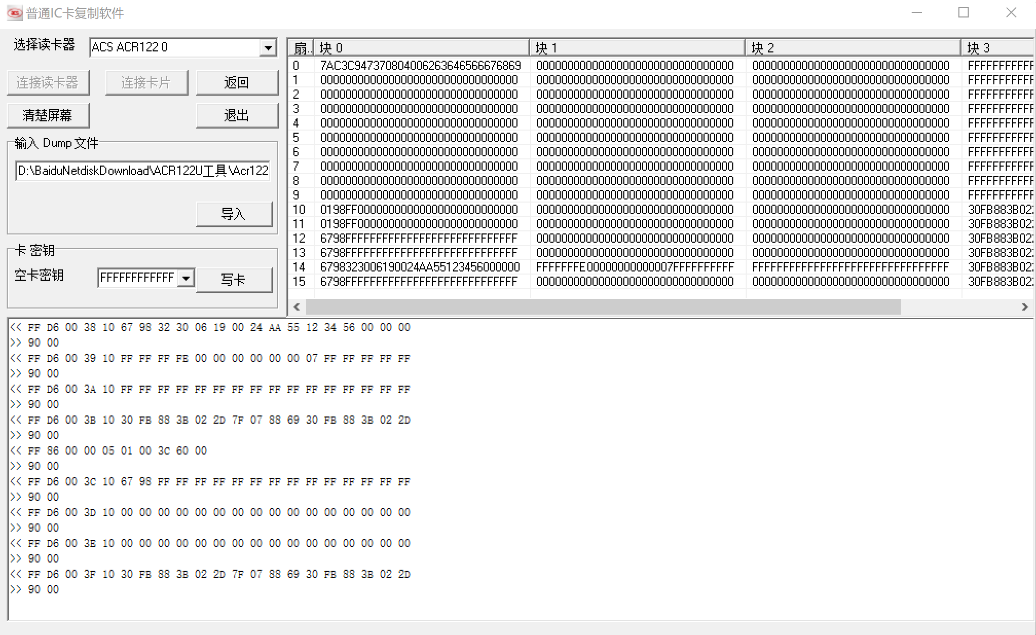 导入刚才破解的 dump文件,把它写入到新卡里面 6、查看写入的数据和原始卡是否有出入